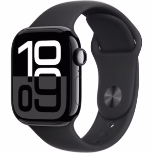 Apple Watch 10 GPS, Carcasa Jet Black Aluminium 42mm, Black Sport Band – M/L