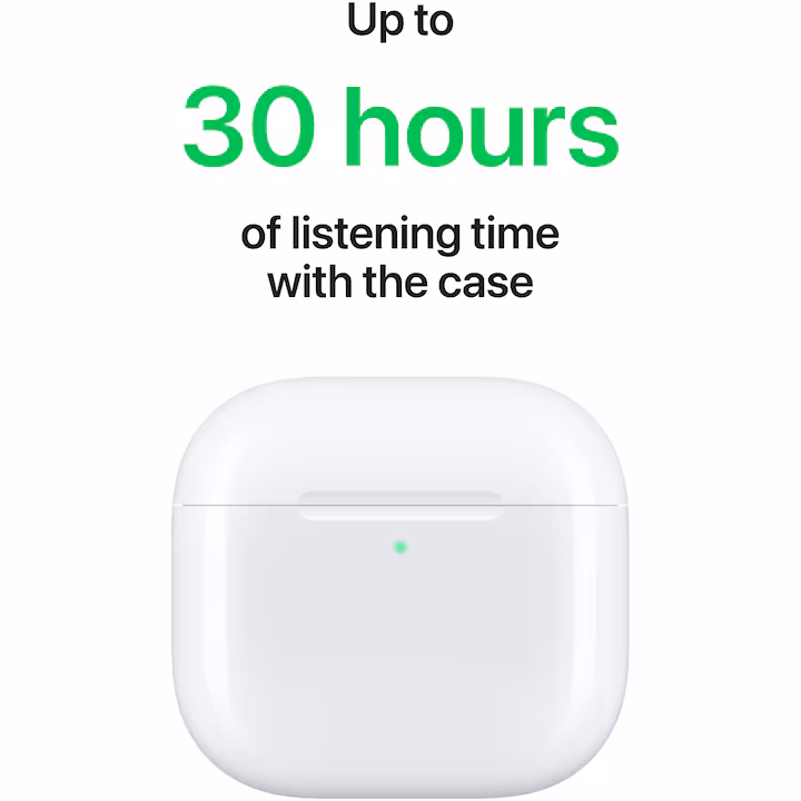 Carcasa de incarcare optimizata este cu peste 10% mai compacta comparativ cu generatia anterioara, fara a compromite timpii de incarcare. Iar AirPods 4 cu functia de Anulare activa a zgomotului vin cu o carcasa de incarcare wireless si un difuzor incorporat pentru aplicatia Gasire, care te ajuta sa stii mereu unde sunt.