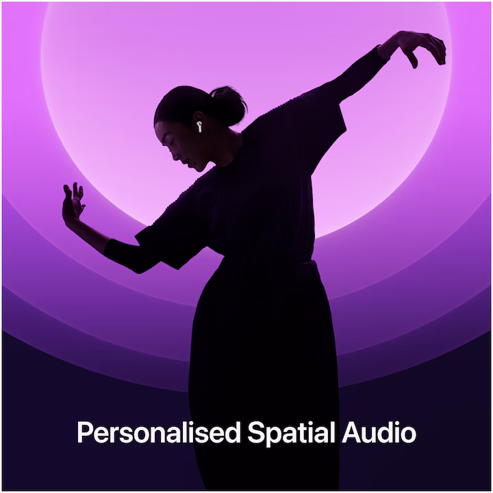 Cand asculti muzica, vizionezi filme sau seriale TV si te distrezi cu jocuri, functia Audio spatial personalizat, cu urmarirea dinamica a miscarilor capului, iti ofera un sunet care te invaluie, pentru o experienta audio tridimensionala.