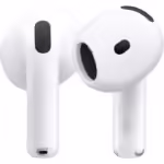 Prim-plan, vedere laterala a castilor AirPods 4.