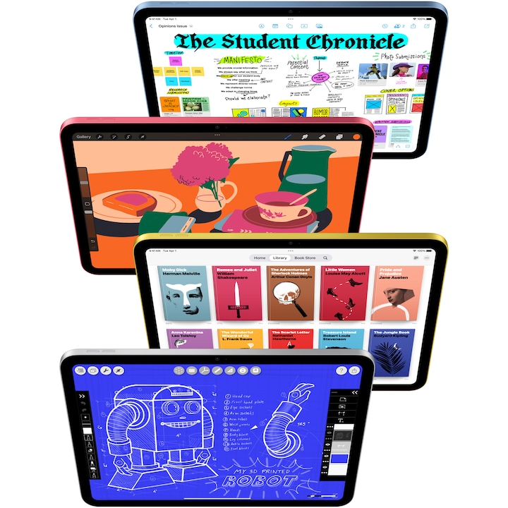 Cu cipul ultrarapid A16 si spatiu de stocare incepand de la 128 GB, iPad este acum mai capabil ca niciodata. Splendidul ecran Liquid Retina de 11 inchi este perfect pentru a crea, a munci sau a te cufunda in activitatile tale preferate.1 Iar cu o serie de accesorii esentiale, concepute special pentru iPad, poti adauga si mai multa versatilitate activitatilor tale de zi cu zi.