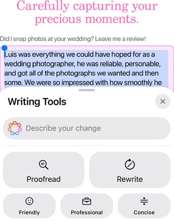 Functia Instrumente de scris are capacitatea de a-ti verifica textul si de a rescrie versiuni diferite pana cand obtii formularea si tonul potrivite. In plus, poate sintetiza textul cu o singura atingere. |