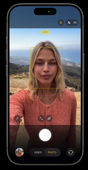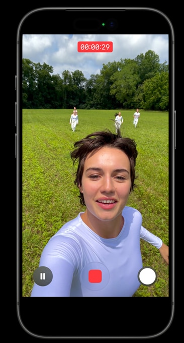 Noua camera frontala iti ofera modalitati flexibile de a incadra pozele si videoclipurile. Plus multe altele. Atinge pentru a extinde campul vizual si a roti din portret in peisaj fara sa misti iPhone-ul. Iar cand ti se alaturi si prietenii in cadru, campul vizual se extinde astfel incat sa ai selfie-uri de gasca.