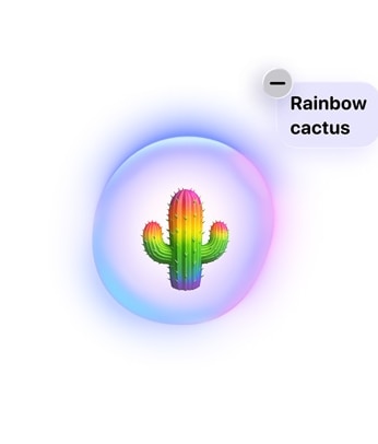 Creeaza un Genmoji potrivit pentru fiecare conversatie, direct din tastatura. Doresti sa creezi un cactus curcubeu? Nicio problema. Trebuie doar sa oferi o descriere. |