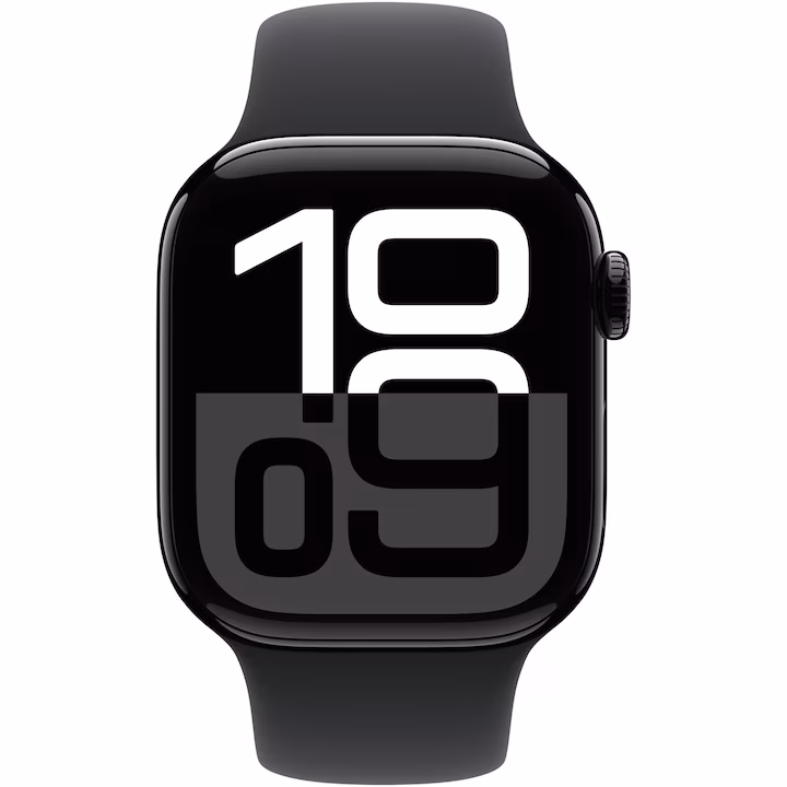 Apple Watch 10 GPS, Carcasa Jet Black Aluminium 42mm, Black Sport Band – M/L