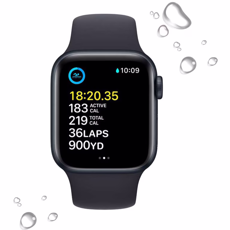 Apple Watch SE are o rezistenta la apa de 50 de metri. Urmareste-ti distantele si seturile in piscina si creeaza antrenamente personalizate pentru inot in piscina. Obtineti date despre maree pentru plaja dvs. preferata cu aplicatia Tides. Fie ca te stropesti, inoti sau faci surfing, apa este buna.