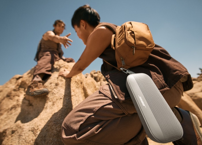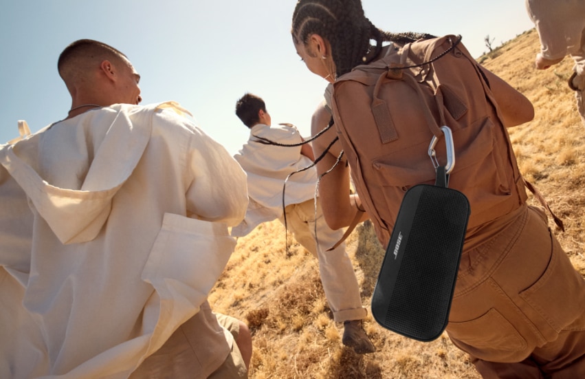 Luati playlist-ul in bagaj, fara probleme. SoundLink Flex este suficient de mica si usoara pentru a fi tinuta in mana, a fi aruncata intr-o geanta sau prinsa de un rucsac.