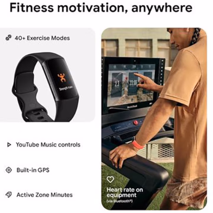 Bratara fitness Fitbit Charge 6, GPS + GLONASS, Bluetooth, NFC, Negru