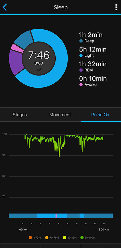 Senzorul Pulse Ox al dispozitivului vívosmart 4 estimeaza nivelul de saturatie a oxigenului din sange. Masurarile Pulse Ox depind de mai multi factori, printre care se numara sanatatea dvs. generala si conditia fizica. Verificarea valorii Pulse Ox poate contribui la estimarea modului in care organismul dvs. absoarbe oxigenul. Activati functia pentru a masura SpO2 pe durata noptii sau utilizati-o pentru a verifica oricand valorile si a afla mai multe despre organismul dvs. |