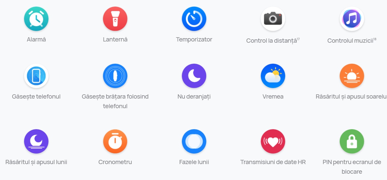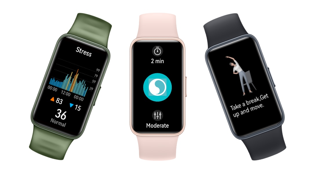 Tehnologia HUAWEI TruRelax™ faciliteaza relaxarea, cu exercitii de respiratie pentru combaterea stresului. Memento-urile de activitate functioneaza in tandem cu functia Health Clovers din aplicatia HUAWEI Health pentru a te mentine motivat sa ramai sanatos si activ pe tot parcursul zilei.