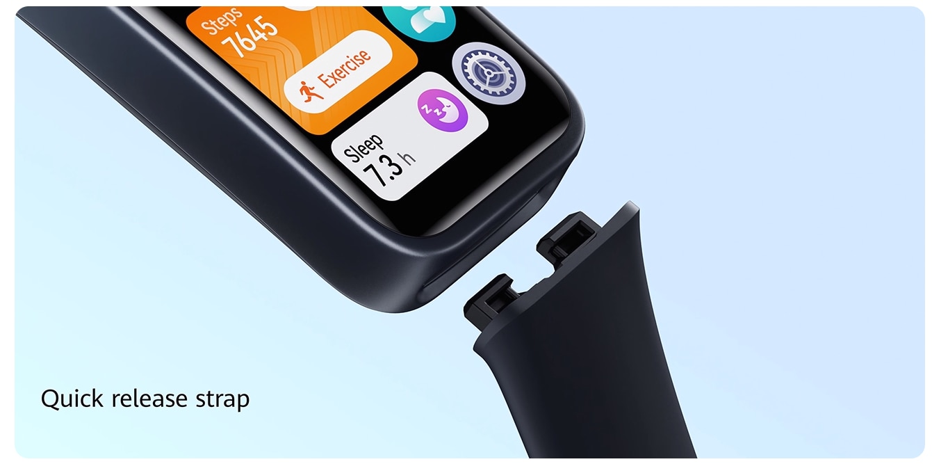 Apasa pentru a indeparta cureaua. Cu designul inovativ de eliberare rapida de la HUAWEI, schimbarea curelelor este extrem de usoara.