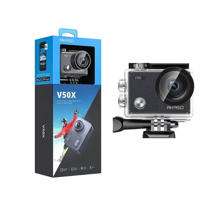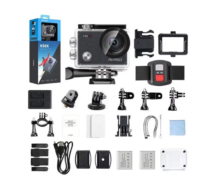 Camera video de actiune AKASO V50 X, 4K 30FPS, 20MP, Ecran LCD 2″, Stabilizare 6 axe, Zoom 4X (Gri)