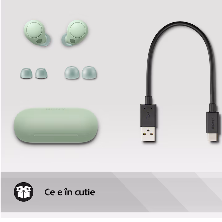 Casti In-Ear Sony WF-C700NW, True Wireless, Noise Cancelling, Bluetooth, Microfon, Conexiune multipunct, Fast Pair, IPX4, Autonomie baterie 20 ore, Verde