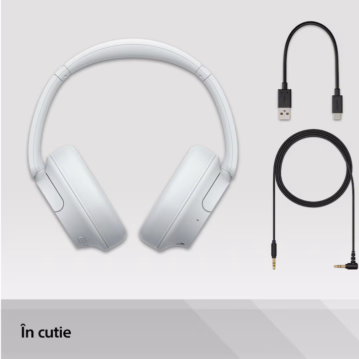 asti Over the Ear Sony WH-CH720NW, Noise Cancelling, Wireless, Bluetooth, Microfon, Multipoint connection, Quick Charge, Autonomie 35 ore, Alb