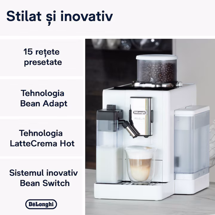 Transforma fiecare bautura intr-o experienta desavarsita cu espressorul automat De’Longhi Rivelia. Un partener de incredere pentru iubitorii de cafea care vor sa savureze arome autentice, fara compromisuri.