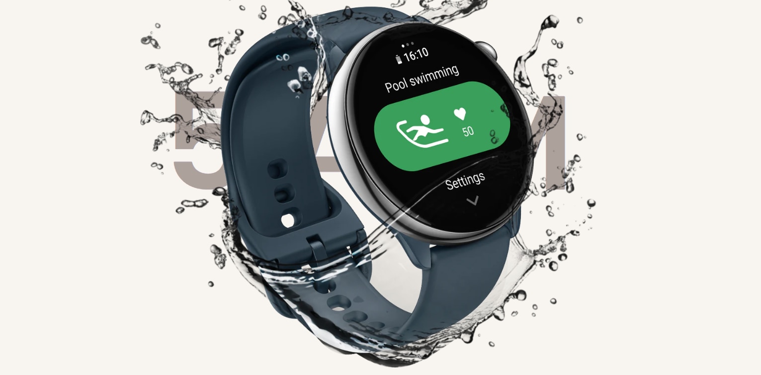 Ceasul poate rezista la echivalentul unei presiuni a apei de pana la 50 de metri, asa ca mergeti la inot fara griji cu modurile Inot in piscina si Inot in ape deschise.