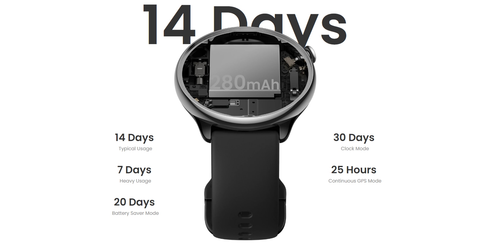 5 sisteme de pozitionare prin satelit | Monitorizare 24/7 a ritmului cardiac, SpO2 si a stresului | Baterie cu o durata de viata de 14 zile