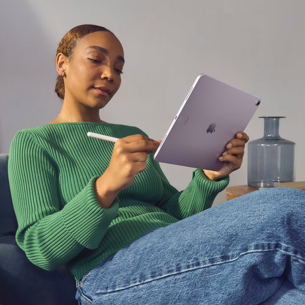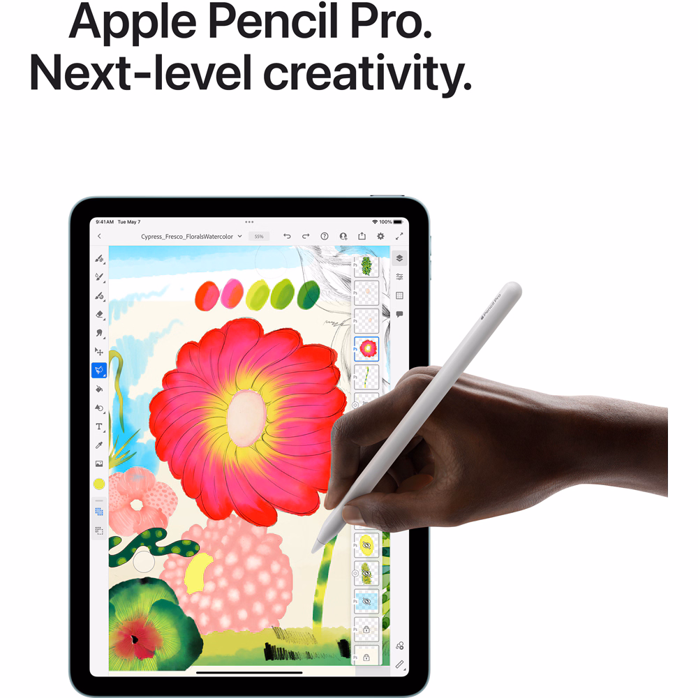 Apple Pencil Pro transforma iPad Air intr-o panza captivanta de desen sau pictura si un dispozitiv de luat notite. Apple Pencil (USB-C) este compatibil si cu iPad Air. Apple Pencil Pro se vinde separat!