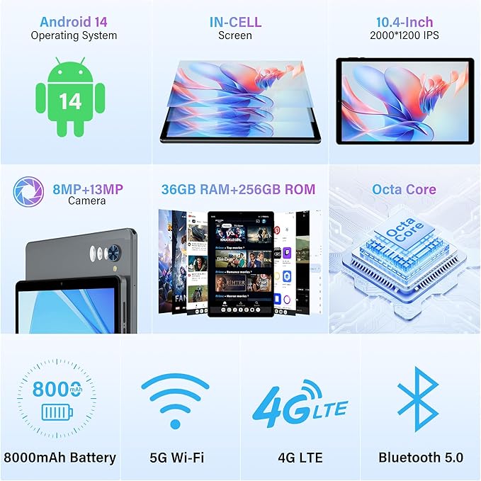 Tableta Rushar 10.4″ 36 GB RAM + 256 GB