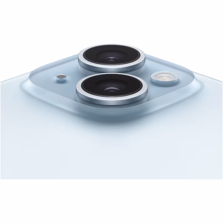 Partea posterioara a noului design inovator este din sticla impregnata in intregime cu culoare. Datorita unui proces personalizat de dublu schimb ionic in tratarea sticlei si a carcasei din aluminiu de clasa aerospatiala, iPhone 15 devine incredibil de rezistent.