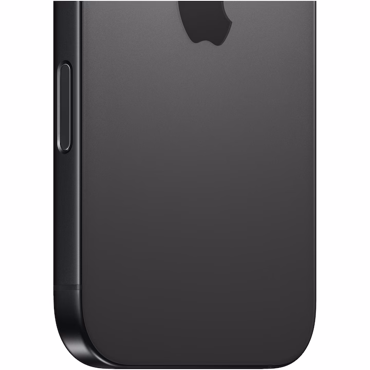 iPhone 16 Pro, exterior lateral, culoare Titan negru, buton Comenzi camera, sistem proeminent de camere Pro