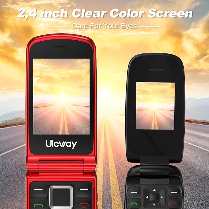 Telefon mobil cu butoane mari uleway pentru vârstnici, SIM gratuit, deblocat, cu clapă, telefon mobil pentru seniori, buton SOS, lanternă, cameră, difuzor Bluetooth, ușor de utilizat pentru seniori (2G-Roșu)