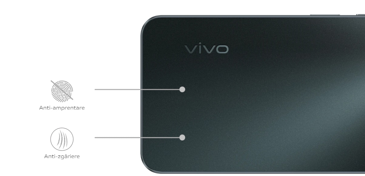 Capacul din spate este realizat dintr-o textura asemanatoare sticlei, rezistenta la uzura si care va mentine culorile stralucitoare si elegante.