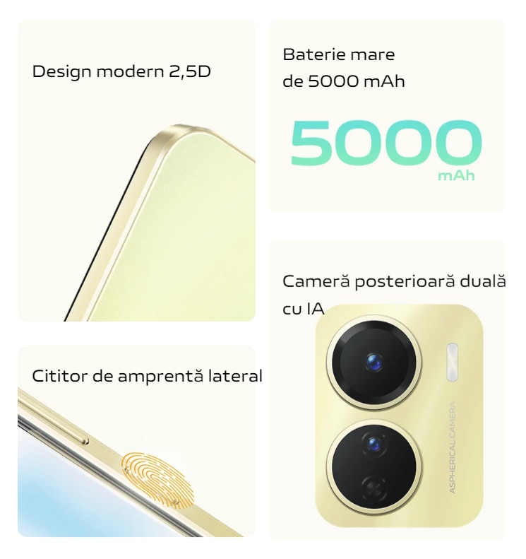 Y16 se mandreste cu o baterie de 5000 mAh (valoare tipica), care tine la distanta grijile legate de baterie.